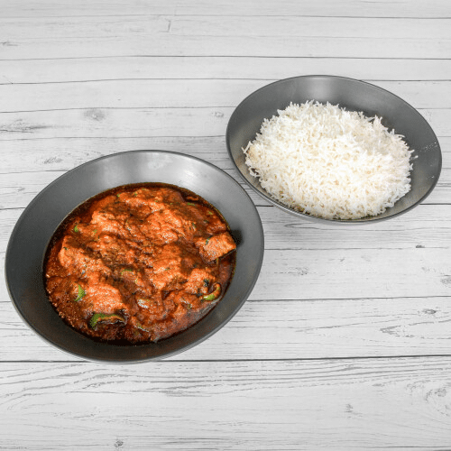 Zartes Hähnchenfleisch in einer aromatischen Currysauce mit exotischen Gewürzen - ein klassisches, herzhaftes Gericht der indischen Küche.
